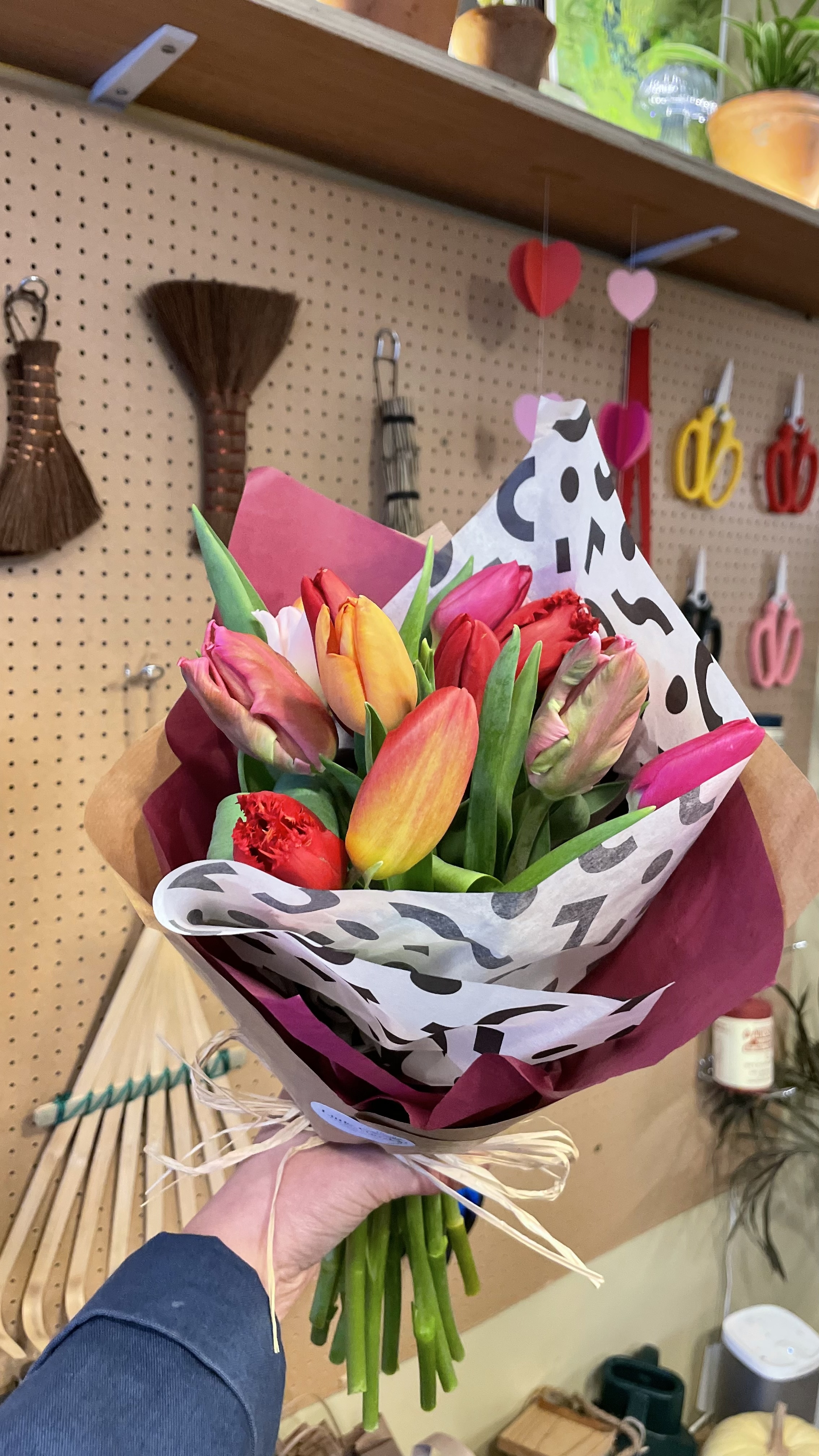 This Mother's Day we're offering a beautifully unique Tulip bouquet for those Spring-loving mums. These bouquets are made up of bright and vibrant British-grown Tulips and will include a mixture of single and special varieties - from double petals, to fringed, and parrot varieties. Wrapped in our extra special gift wrap with artful papers and finished with a silk bow.